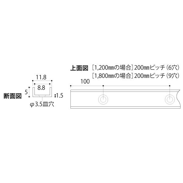 ブースディバイダーシリーズ ブースバー用下レール RA1 L1800 クローム