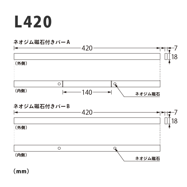 | サイズ | L420×H18、t14mm(7mm×2本) |